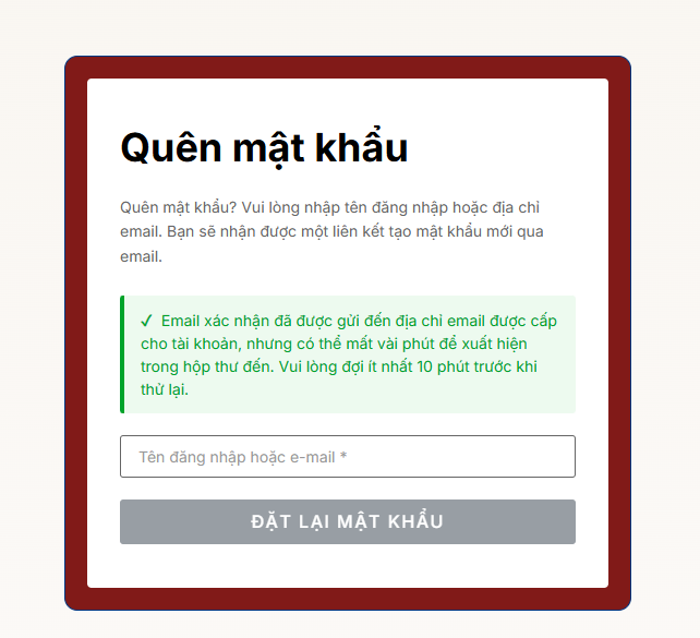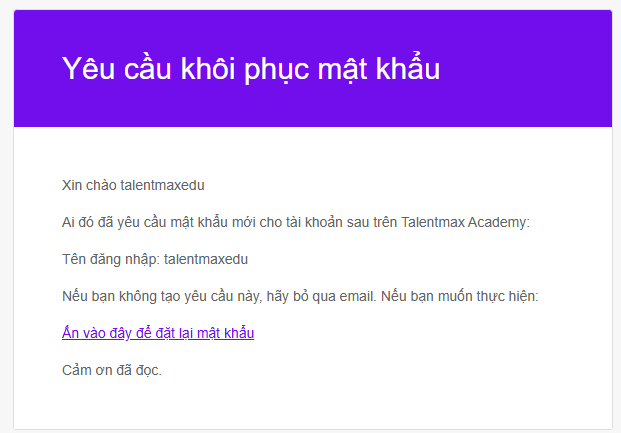 Sau khi nhập email thì hệ thống sẽ gửi cho bạn một đường link mới để đặt lại mật khẩu