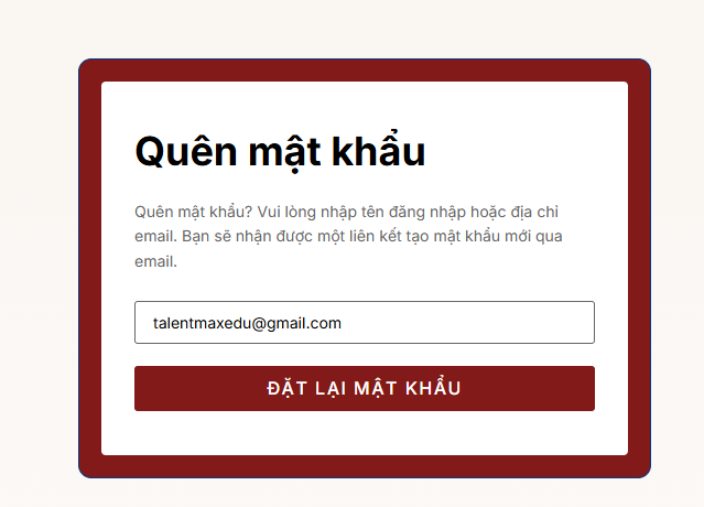 Bạn nhập email của bạn và ấn Đặt lại mật khẩu