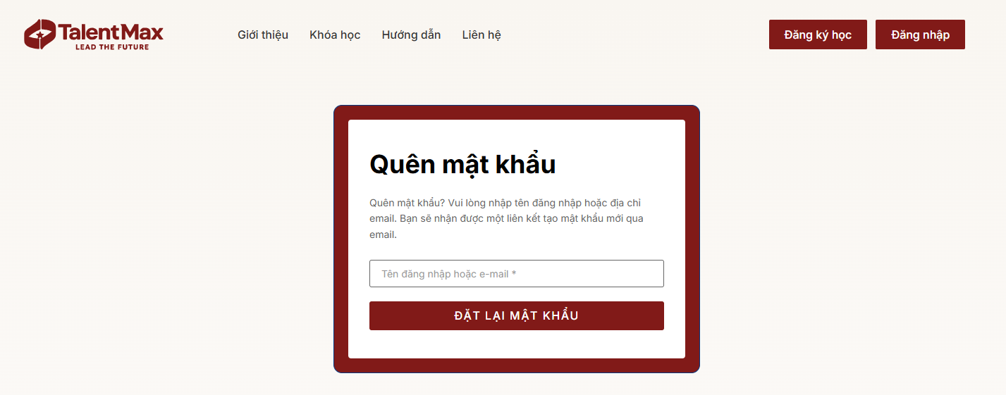 Tại trang chủ, bạn bấm vào nút Đăng nhập https://talentmax.edu.vn/dang-nhap/ và bấm vào “Quên mật khẩu”
